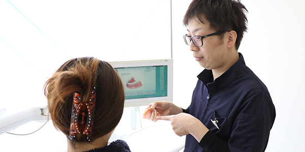 入れ歯が合わないといった悩みを多く聞きますが、当院では、1人ひとりのお口にあった入れ歯を製作しています。入れ歯でお悩みがある方は是非、ご相談下さい。