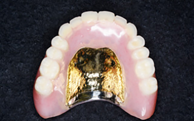 ノンクラスプデンチャーは金属のバネを使用しないので、入れ歯だと気づかれないのが最大のメリットになります。また、総入れ歯だと食事をする時に少し味気ないと感じられる方は、金属床の入れ歯をオススメいたします。保険診療の総入れ歯になると、ほとんどをプラスチックの樹脂で覆うことになります。味覚は舌だけでなく、口の中の粘膜にも左右されるので、食事も味気ないものになってしまいます。