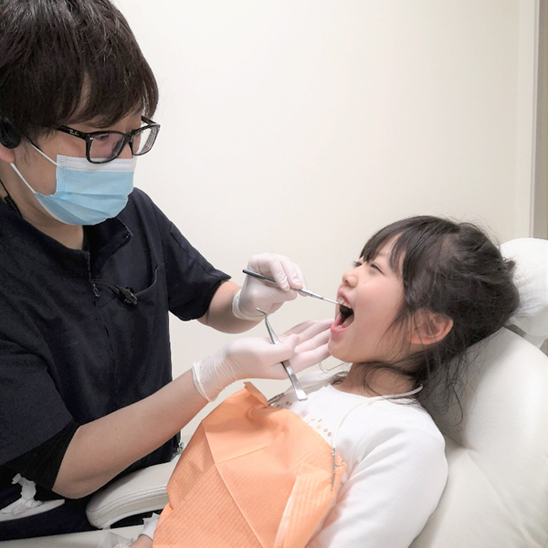 当院の小児歯科の考え方では、まず、虫歯を作らない虫歯予防のための診療が基本となります。ただ、虫歯ができてしまったお子さまには、できるかぎり怖がらせないような診療の工夫や配慮を心がけています。